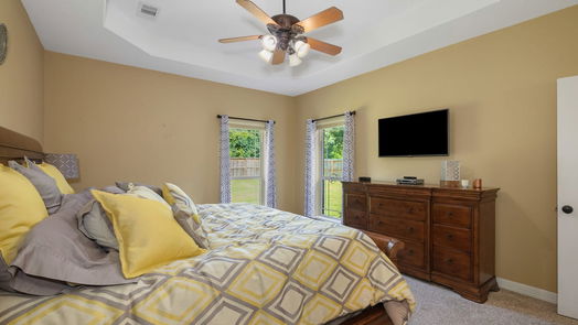 This stunning 3-bedroom, 2.5-bathroom residence offers everything you need for comfortable and luxurious living. Enjoy 3 generously sized bedrooms, including a master suite with trayed ceilings, and a private bathroom with a large walk in closet with two entries. There are 2 Built in gun safes staying with the property. A separate office space provides the ideal setting for working from home or managing personal tasks. The kitchen is a chef's delight, featuring beautiful granite countertops, below cabinet lights, built in china cabinet, ample cabinet space, and modern appliances. The attached 3-car garage offers plenty of room for vehicles, storage, and hobbies. The home includes upstairs unfinished space ready to have your personal touch to add to this home. The large fenced-in yard provides a safe and private space to play and entertain. Home is located in a beautiful neighborhood with access to resident lakes for fishing and close Lakeside Park with a walking trail and pavilion.