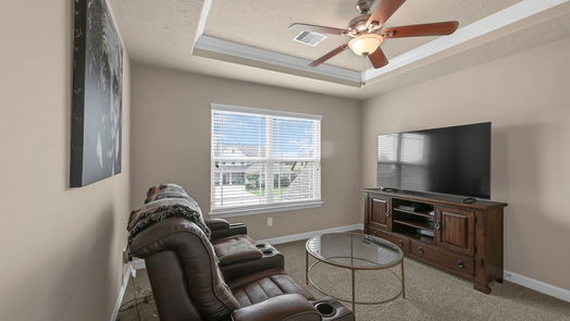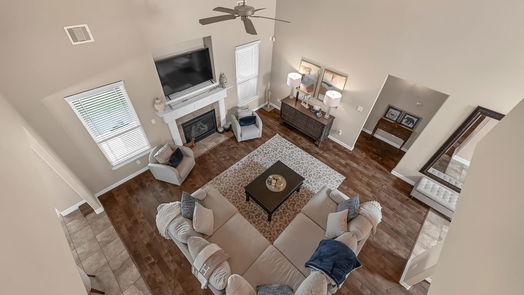 Welcome to this immaculate home! Large 4-5 bedroom home in Lakes of Champions in the highly acclaimed Barbers Hill school district. You will love the high cathedral ceilings, open floor plan, decadent engineered hard wood floors, and neutral color schemes! Kitchen features island, granite counter tops, stainless steel appliances and ample storage space. You will love the downstairs primary bedroom with double tray ceilings, crown molding, and recessed lighting. The luxurious primary bathroom has dual vanities and sinks, doorless shower, and garden tub and large closet! Hosting guest will be easy with another guest room downstairs with walk in closet, and a full bath just outside the room. Upstairs you will find 2 more bedrooms and a game room that could be a fifth bedroom and a full bathroom! All that PLUS 3 car garage and covered front and back porches! Don't miss out on this one ~ call today!