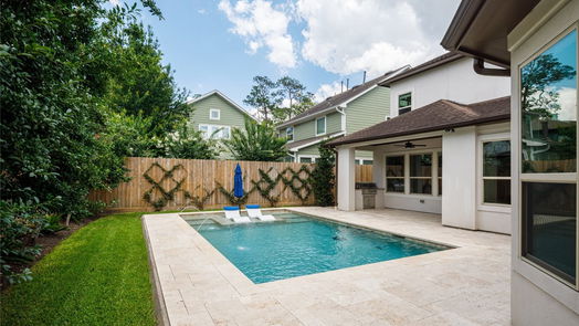 Welcome home to Wakefield Drive. Zoned to highly sought-after OFE, this home by renowned builder Steven Finger boasts sun-kissed spaces, an open layout and glistening pool. Step into a bright foyer and home office with custom built-ins and large window. Make your way to the formal dining room where French doors open onto a sunny patio ideal for indoor-outdoor entertaining. Whip up meals in the island kitchen with Thermador gas cooktop, built-in refrigerator-freezer, Bosch double convection ovens and walk-in pantry. Take in views of the sparkling pool from the breakfast and living rooms. Grill all summer long in your outdoor kitchen while enjoying al fresco dining poolside under your covered patio. Find respite in the luxurious first-floor primary retreat with sumptuous marble ensuite bathroom and two walk-in closets. Upstairs discover a game room, media room, handy study station, and three spacious secondary bedrooms with two nicely outfitted bathrooms. Come see the best of Oak Forest.