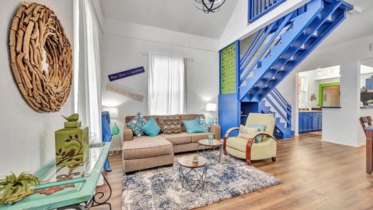 Adorable, unique 2-bed, 2-bath home with elegant entrance, cozy loft bedroom, and Airbnb-ready features.