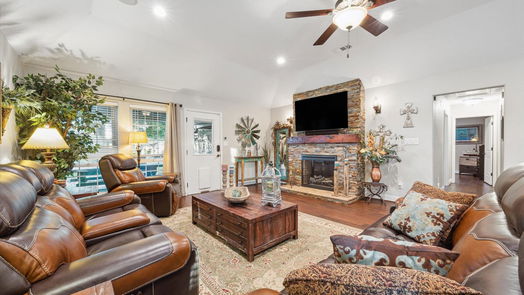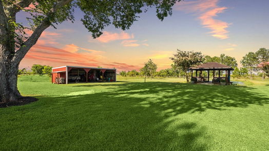 This stunning home has it all, including a Generac Standby Generator! Beautifully Remodeled 4 Bedroom, 3 Full Bath Home Featuring 2 Primary Bedrooms on 2.5 Acres! 30X40 Building/Workshop, 20X40 Covered RV/Boat Parking w/50 Amp Hookup, 11X32 Workshop with 11X13 Covered Golf Car Shed, 20X30 3-Stall Open Barn, a 16X16 Gazebo overlooking a 50 X100 Stocked Pond w/aeration fountain! Hardwood floors throughout, plus tile & travertine, granite counters & stainless appliances in the kitchen, copper sinks, a gorgeous stone fireplace with a solid red-wood mantle! This 2.5 acre property also features an assortment of shade trees: oak, maple, mulberry, willow, crepe myrtle, and pecan! The Stocked Pond includes crappie, catfish, and more. There is also self-watering plant irrigation system! The main workshop features an outdoor kitchen and bar with a restaurant grade Imperial 4-burner griddle, and double oven/range! No HOA! Horses Welcome! Schedule your showing today! Buyer to verify room sizes.