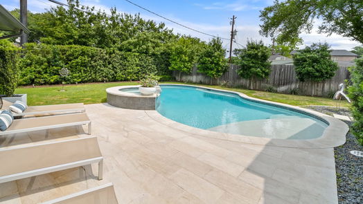Stunning 1.5 story home remodeled to the studs in 2018. Gated driveway with a beautiful pool, spa & backyard. Zoned to Mark Twain Elementary. This stunning estate features an open floor plan with designer finishes & 48" professional Jennaire appliances. New GAF warrantied roof in 2023. Western pivot front door & raised ceilings give the home its modern elegance. HVAC w/ dehumidifier, 1/4 sawn whiteoak hardwoods, tile floors, open staircase & so much more! Formal dining room, private study & living room with sliding doors overlooking your backyard. Huge custom walnut kitchen island, cabinets & built-ins, quartz counters, 6 burner with griddle double range. Primary suite with backyard sliding doors, 14’ custom closet has private bath with quartz counters & dual sinks. Floating vanity & custom shower with 3 shower heads is the perfect set up for your primary retreat. Secondary bedrooms have access to remodeled second bath. Fabulous backyard is perfect for entertaining.