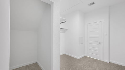 The Mitchell plan is a two-story home featuring 4 bedrooms, 3 baths, and 2 car garage. The foyer opens to a downstairs guest bedroom and bath with linen shelves. The kitchen includes a breakfast bar with beautiful waterfall granite counter tops, white cabinets, stainless steel appliances and corner pantry which connects to the split dining area and family room. The private primary suite with attractive primary bath features dual vanities, water closet and walk-in closet. A versatile gameroom greets you at the top of the stairs and opens to two additional bedrooms and bath. The standard rear covered patio is located off the family room. Nimbus Oak LVP flooring and Silver dollar carpet can be seen throughout the home. *Images and 3D tour are for illustration only and options may vary from home as built.