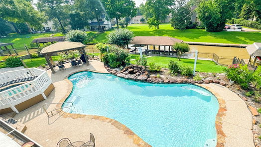 Exquisite Waterfront Oasis: Luxurious 4-Bedroom Home with Pool, Boatlift, and Jet Ski Lifts. Welcome to your dream waterfront retreat! Nestled in the serene beauty of Atascocita Shores, this stunning 4-bedroom, This 3254 square-foot home offers a rare blend of luxury, comfort, and waterfront living. Whether you're a seasoned golfer or just enjoy a casual round with friends, having a golf course in the subdivision adds an extra dimension of recreational fun to this waterfront oasis. Purchased and installed a whole-house generator system with a transferable warranty. 03/24. The house has never flooded outside the misting system!! Updated all plumbing with PEX, new ac system plus many more.